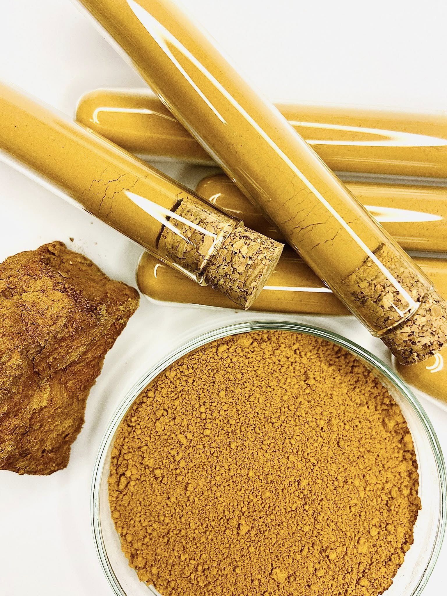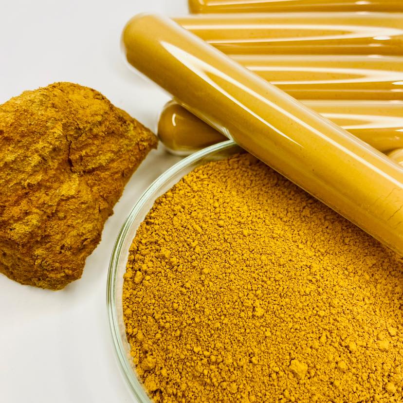 Rudawa glinka z Pogórza Kaczawskiego to w pełni naturalny pigment mineralny pozyskiwany z lokalnych złóż ilastych na Dolnym Śląsku – w krainie dawnych wulkanów i bogatej historii geologicznej. Charakterystyczny złotawo-rdzawy kolor jest efektem obecności naturalnych tlenków żelaza.